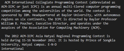 s를 먼저 입력받는다.i가 s의 길이보다 크거나 같을 때 while문을 빠져나오도록 하였다.