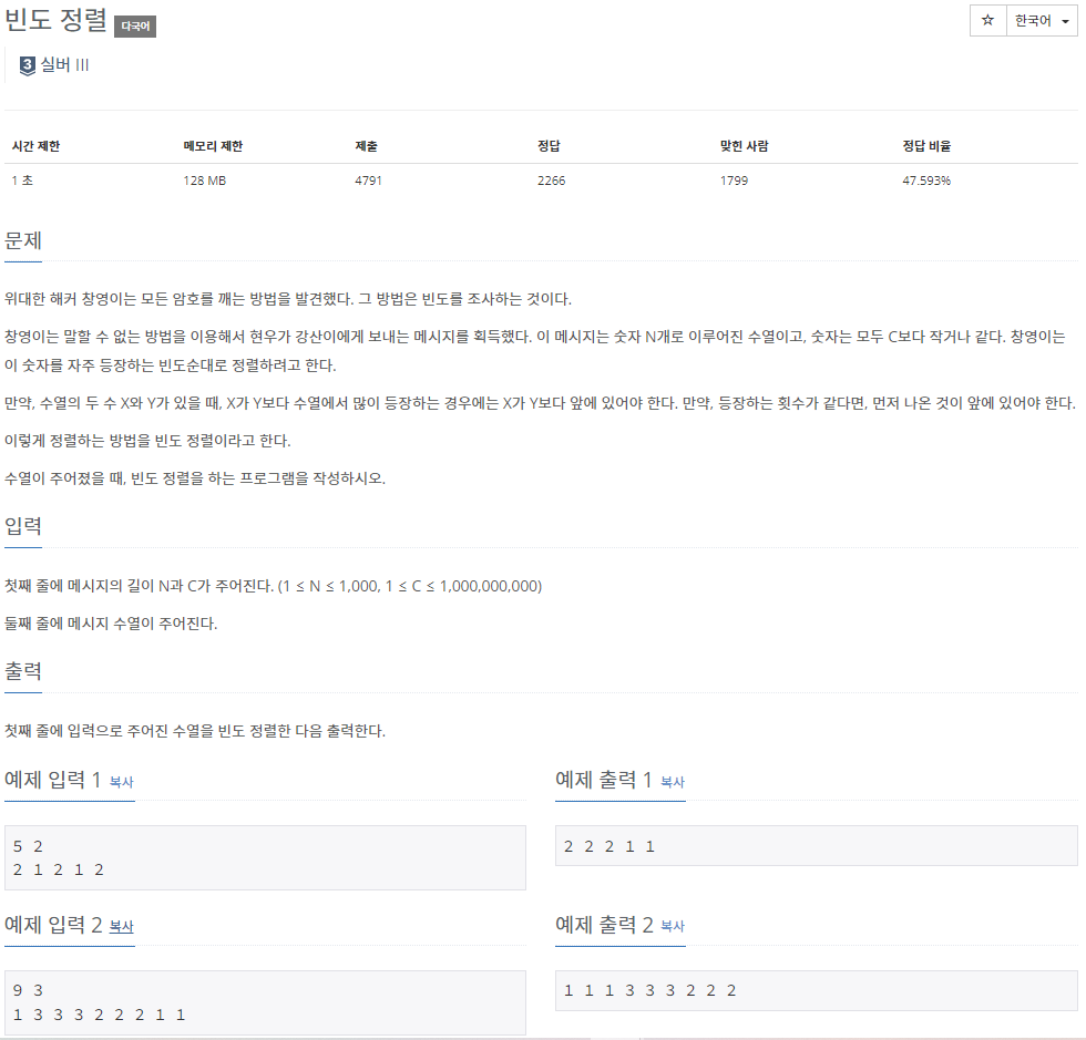 | [BOJ] 2910 빈도 정렬 (0) | 2022.10.02 |