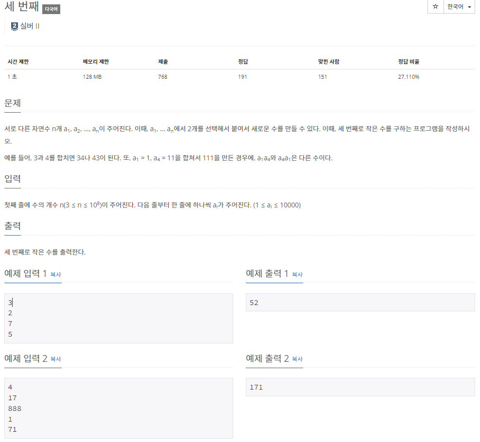 이 리스트를 sort해주어 세번째로 작은 수를 출력해주었다.