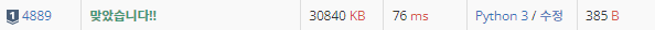 | [BOJ] 3077 임진왜란 (0) | 2022.11.13 |