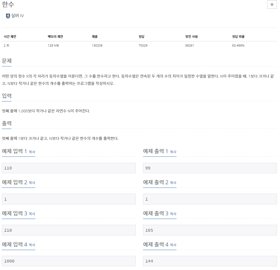 i가 100보다 작은 경우, 항상 한수이므로 cnt값을 증가시켜주었다.