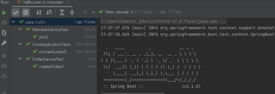 - hello.core에 있는 test 전부를 한번에 test해기