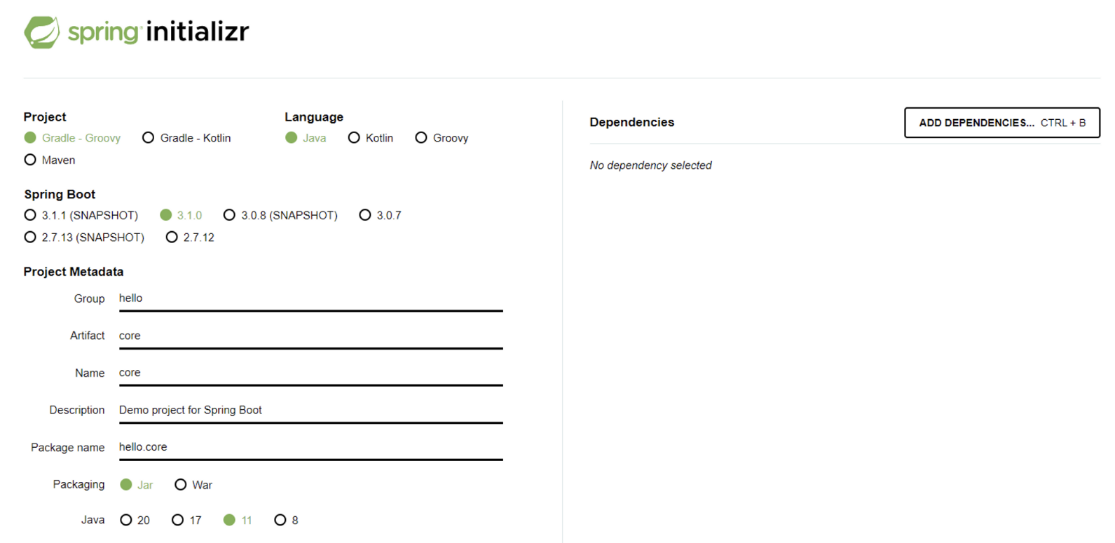 참고: 프로젝트 환경설정을 편리하게 하려고 스프링 부트를 사용한 것이며, 지금은 스프링 없는 순수한 자바로만 개발을 진행하고 있다.
