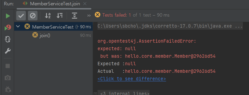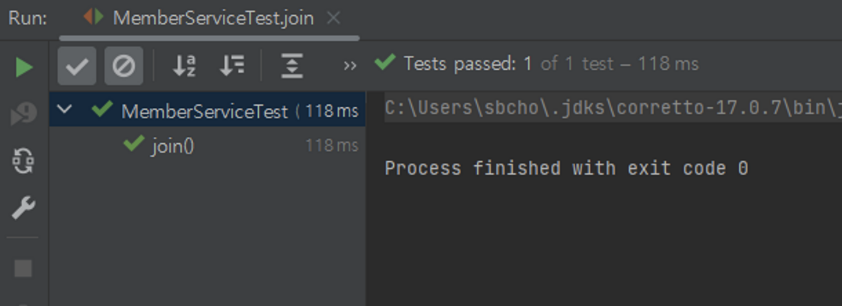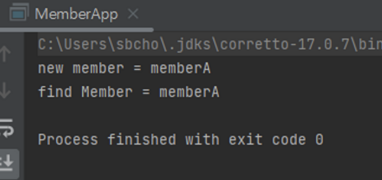// MemoryMemberRepository의 save가 호출된다 (오버라이드)